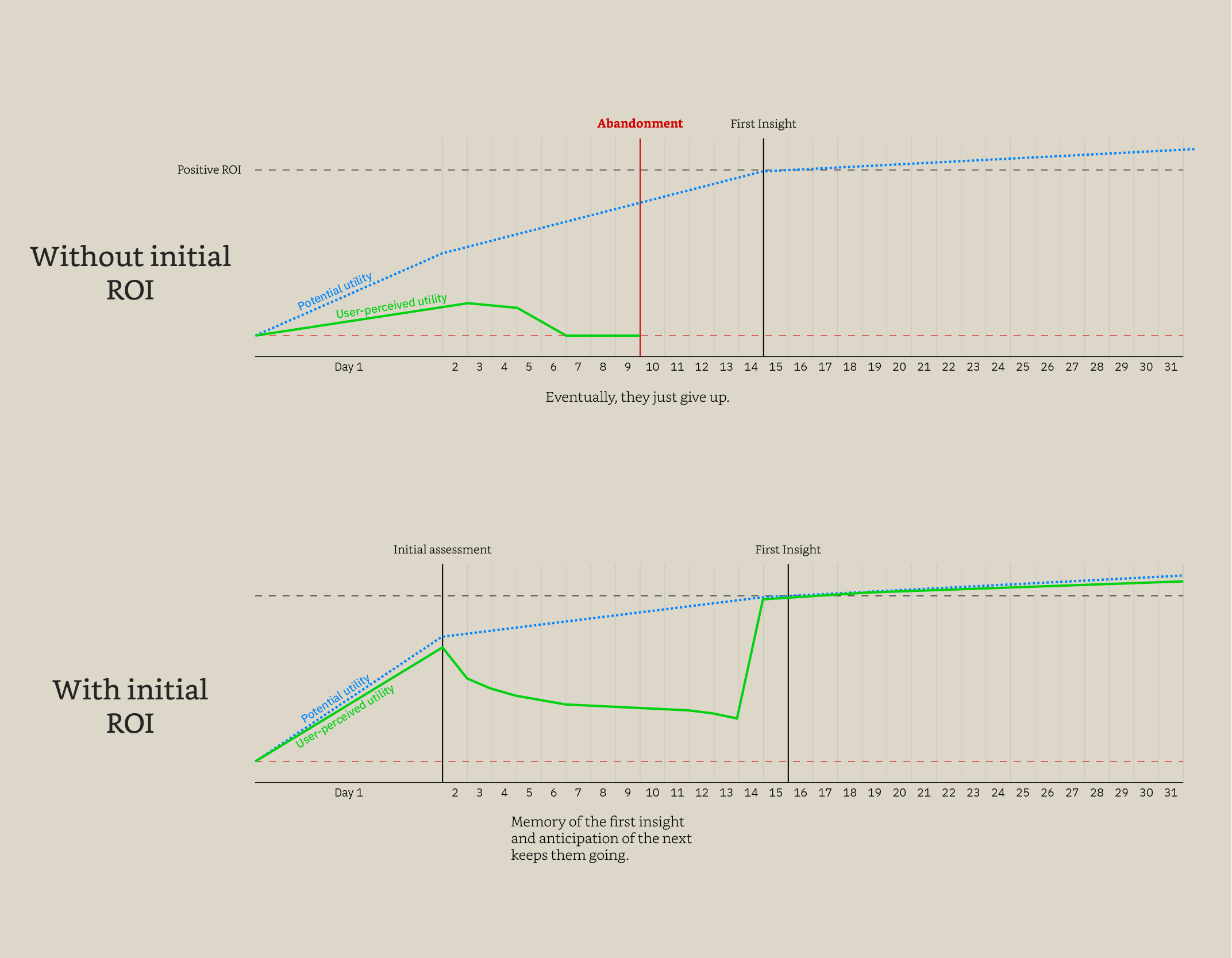 We pressed forward with this very long process knowing that we had a limited number of test users who had unlimited access to company support staff, who would even help them fill the information out. We experiment with different levels of hands-on vs. hands-off. Ultimately, we identified the point at which users would lose interest in the program. We figured out that we had to deliver some sort of value immediately in order to keep the user's interest over the period of time required to deliver the first feedback on the effectiveness of their supplement.