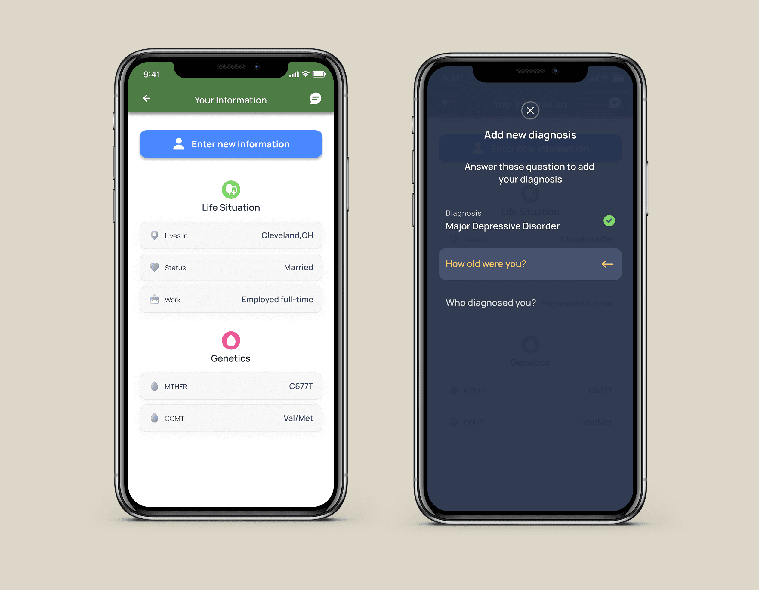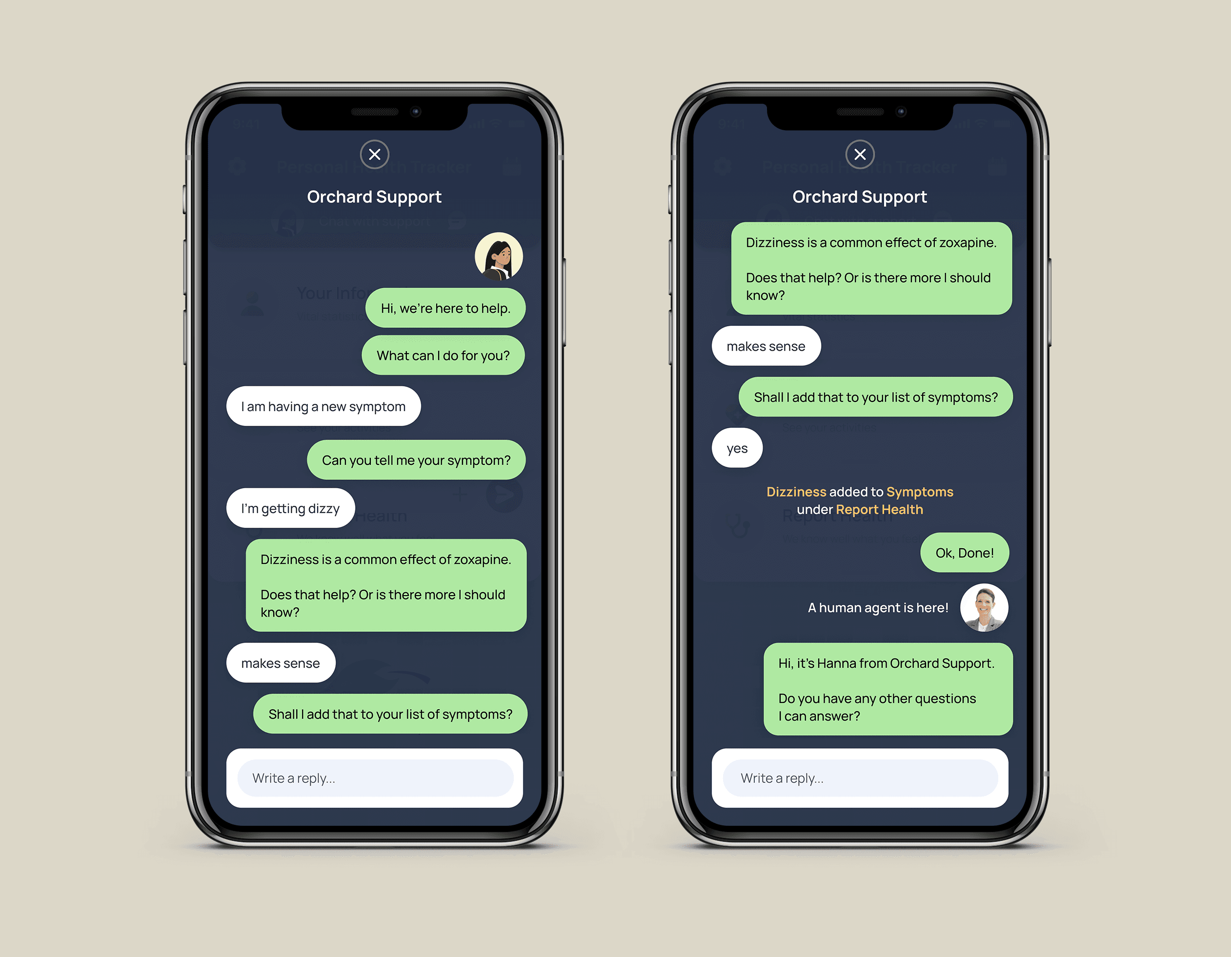 The app had two mains ways of gathering information, both of which were equally important. One was push notifications through SMS or the app itself. This kept people on a schedule, filling in requisite information regularly, without which the program would not work. The other was the user actively entering information as it occurred to them. Perhaps, during initial evaluations, the user forgot about an intermittent symptom and it occurred to them later on to add it. We needed to be able to capture that insight before they lost it. Therefore, we needed as many points of access as possible. Being able to add information directly into the app rather than through chat gave a user the reassurance of control.