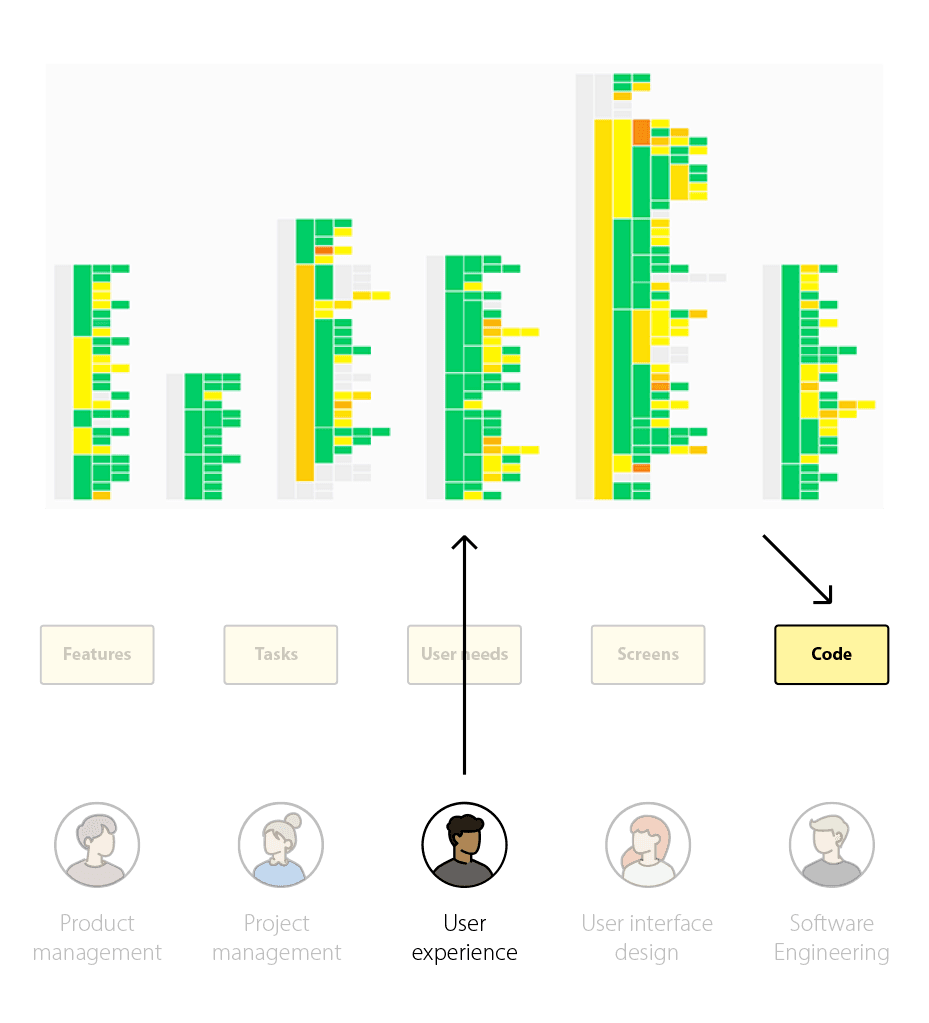 XenBuild models your product into a visual schematic based on components like pages, screens, UI elements, and behaviors. This universal model is relevant to everyone, regardless of their function. You can see everything from code to UI to epics in the context of the product itself.
